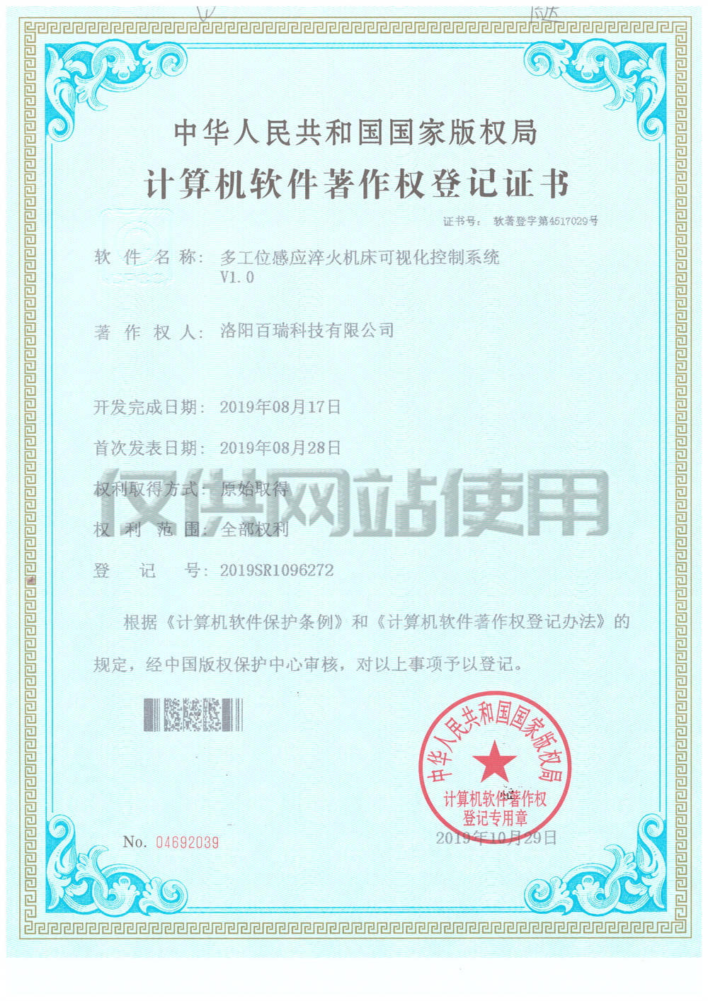 計算機軟件著作權登記證書2